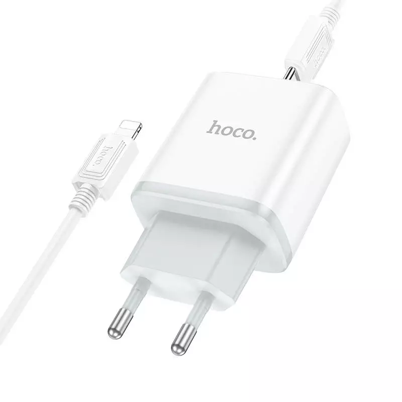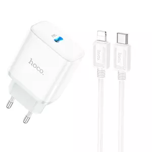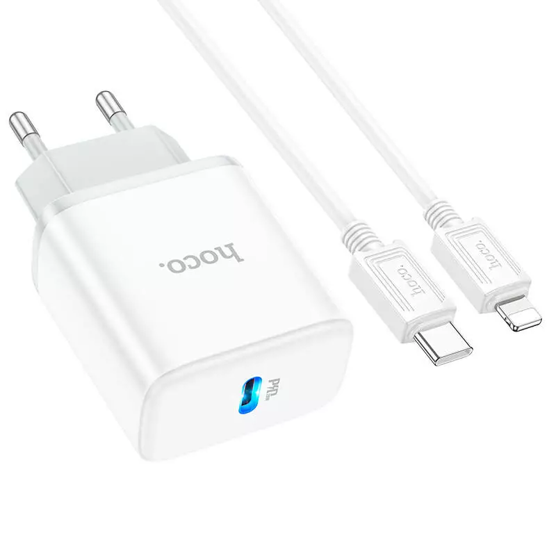 Набір СЗУ 110-240V HOCO C104A + кабель Lighting, 1xUSB-C, PD20W, кабель 1м, White, Box
