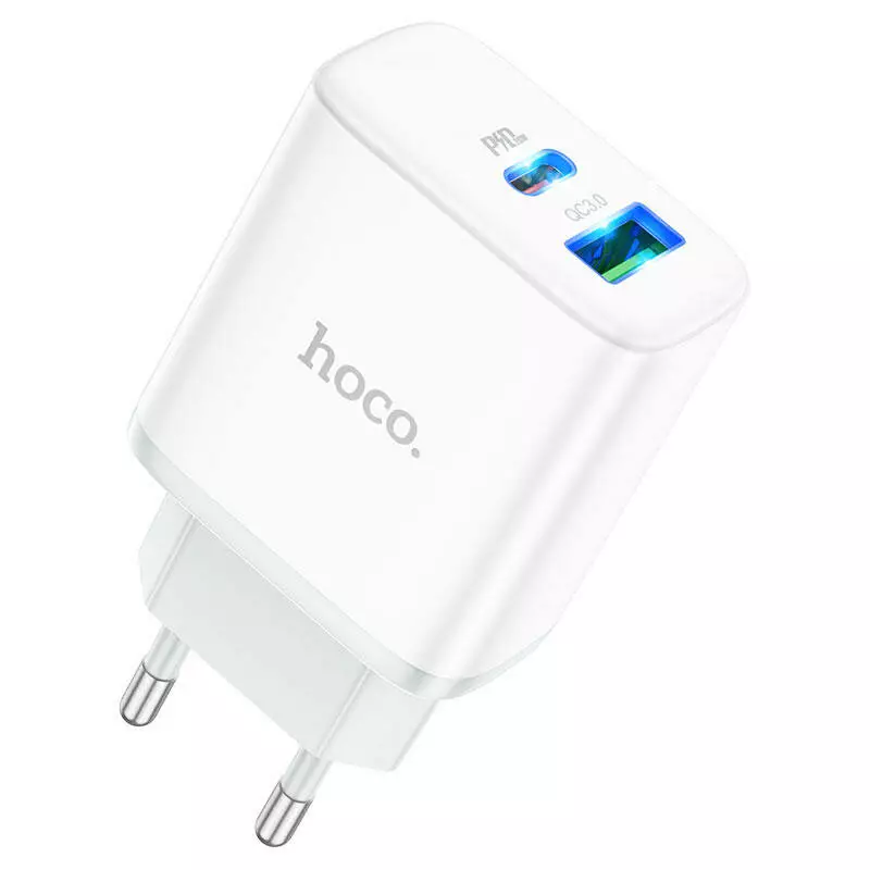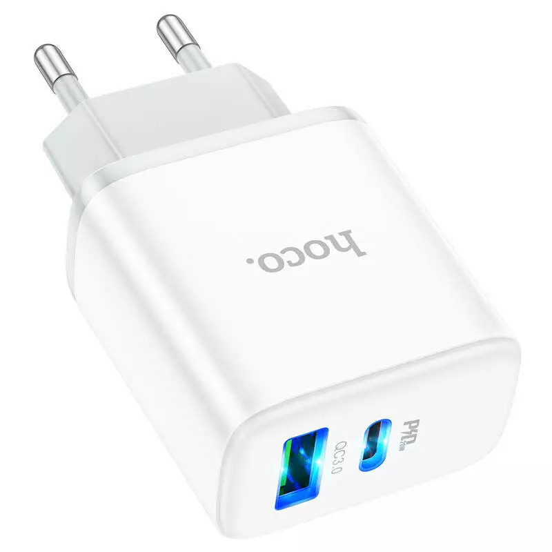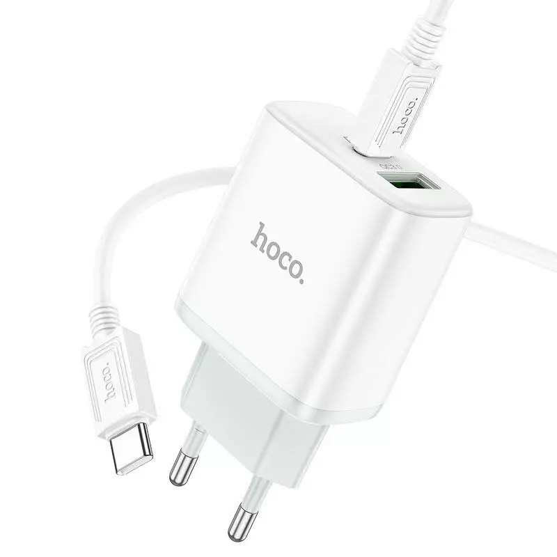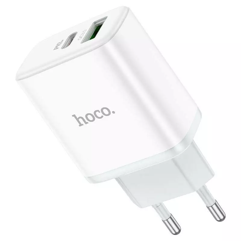 Набір СЗУ 110-240V HOCO C105A + кабель Type-C, порти: USB-C+USB, PD20W+QC3.0, кабель 1м, White, Box