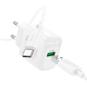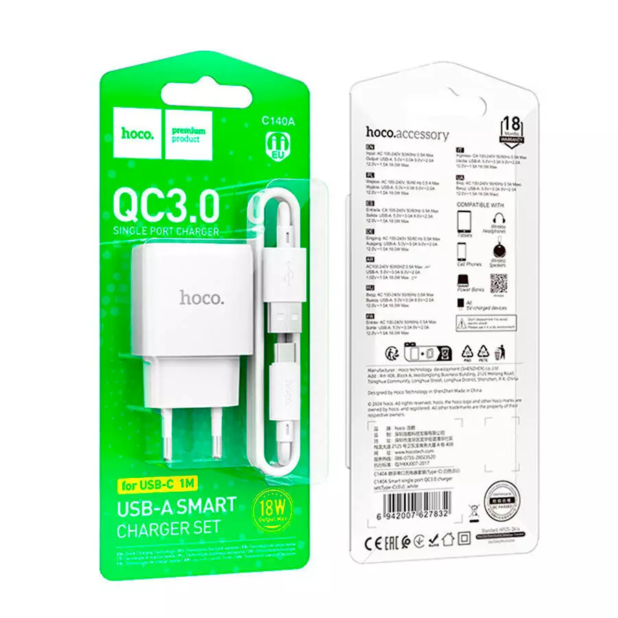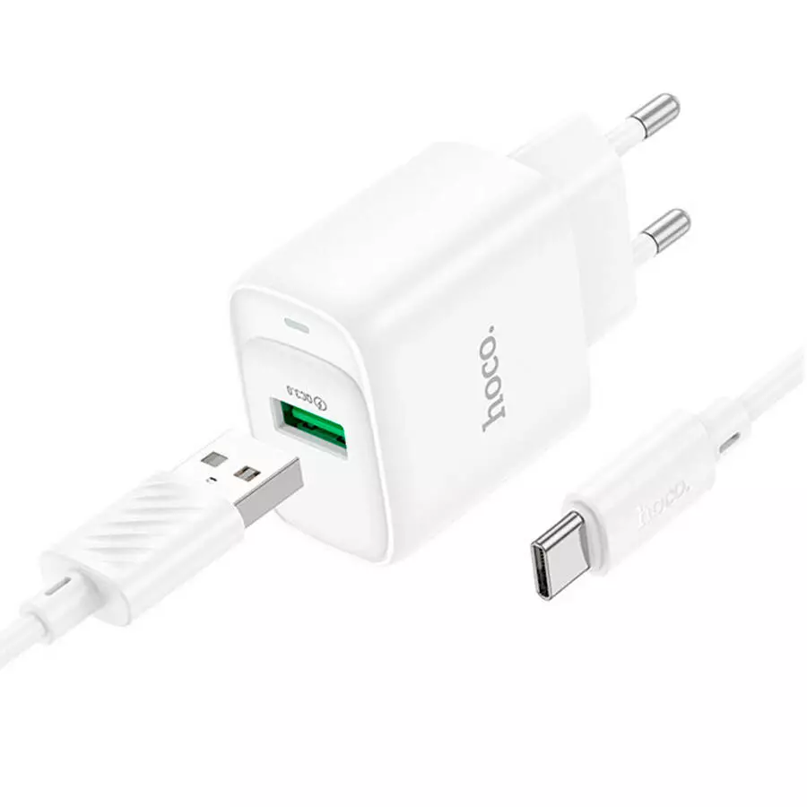 Набір СЗУ 110-240V HOCO C140A+ кабель Type-C, 1xUSB, 18W, кабель 1м, White, Blister