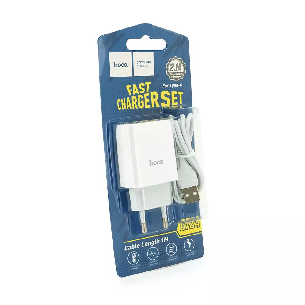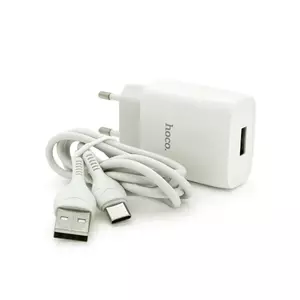 Набір СЗУ 110-240V HOCO C72A+ кабель Type-C, 1xUSB, 2.4A, кабель 1м, White, Blister