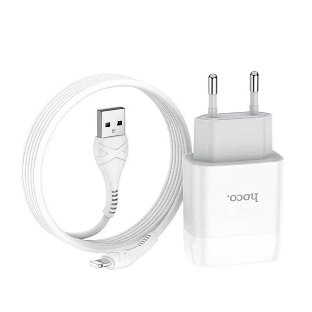 Набір СЗУ 110-240V HOCO C73A+ кабель Lighting, 2xUSB, 2.4A, кабель 1м, White, Blister