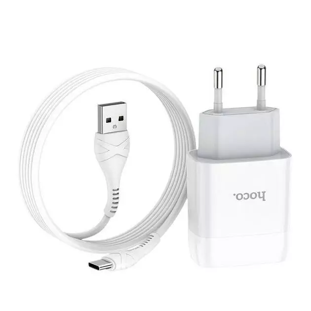 Набір СЗУ 110-240V HOCO C73A+ кабель Type-C, 2xUSB, 2.4A, кабель 1м, White, Blister