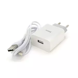 Набір СЗУ 110-240V HOCO C81A 1xUSB+ кабель Lighting, 2.1A, кабель 1м, White, Blister