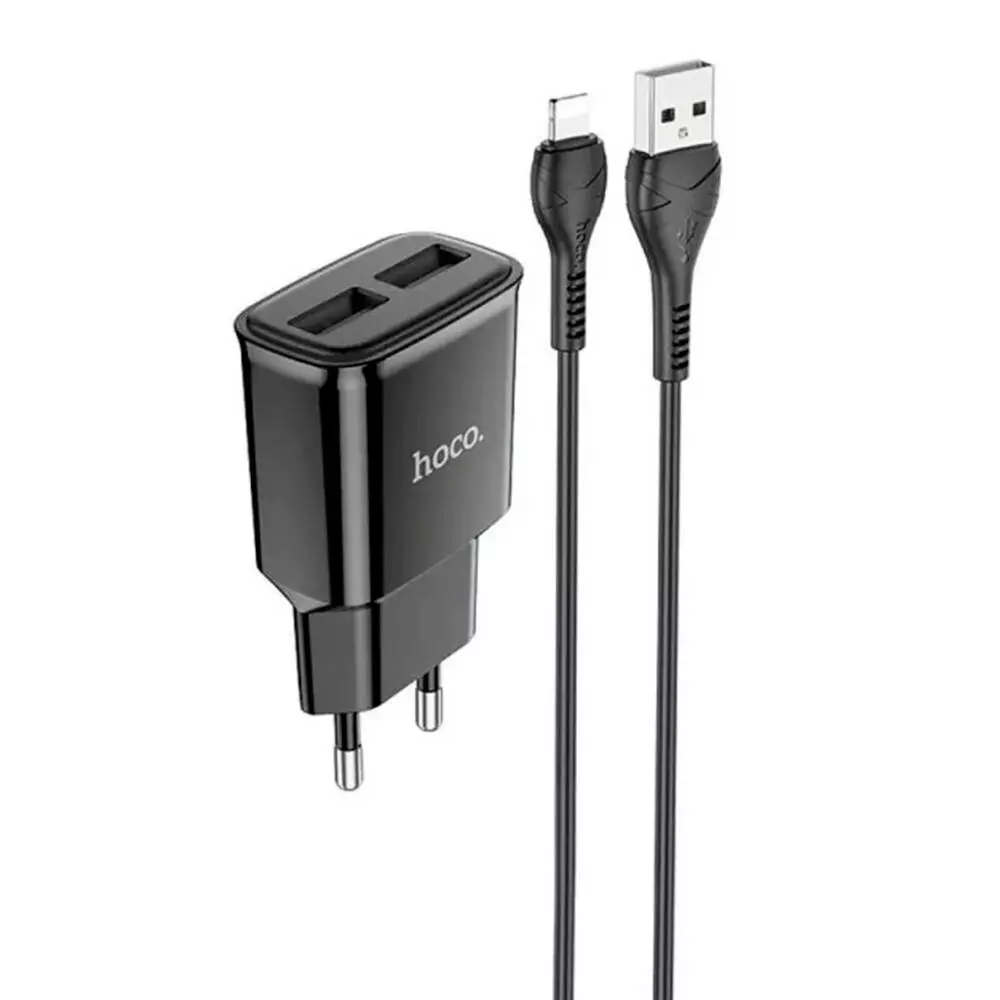 Набір СЗУ 110-240V HOCO C88A+ кабель Lighting, 2xUSB, 2.4A, кабель 1м, Black, Box