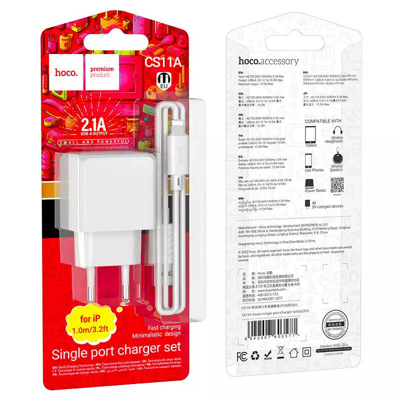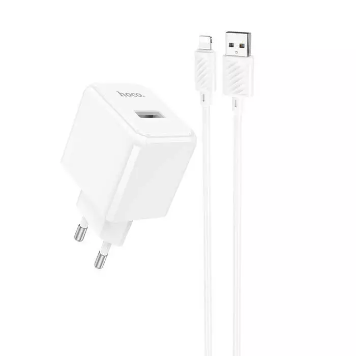 Набір СЗУ HOCO CS11A+ кабель Lighting, 1xUSB, 2.1A, кабель 1м, White, Blister