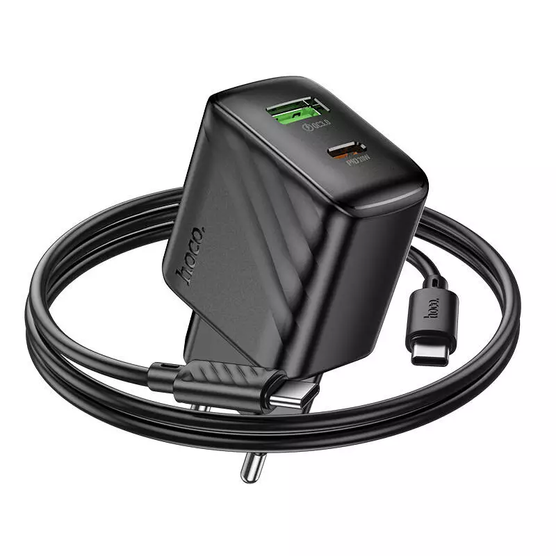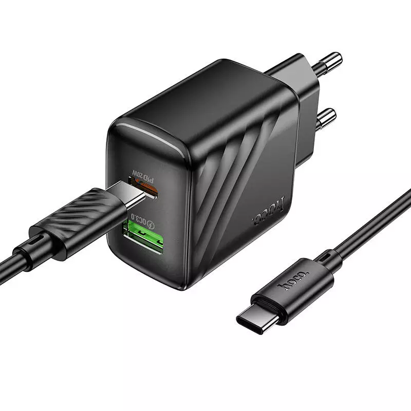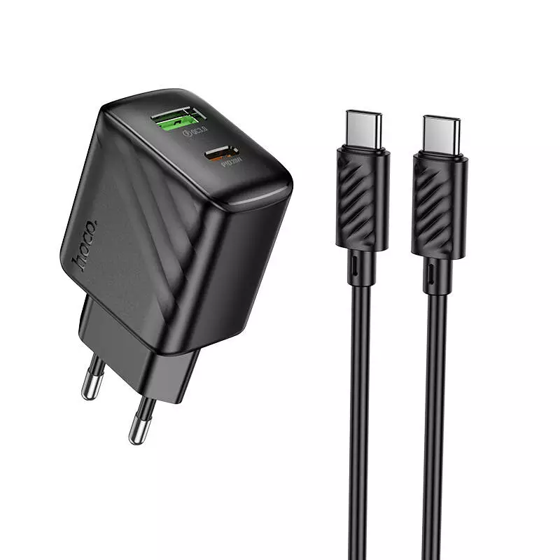 Набір СЗУ HOCO CS25A + кабель Type-C/Type-C, 1xUSB+1xUSB-C, PD20W+QC3.0, кабель 1м, Black, Box