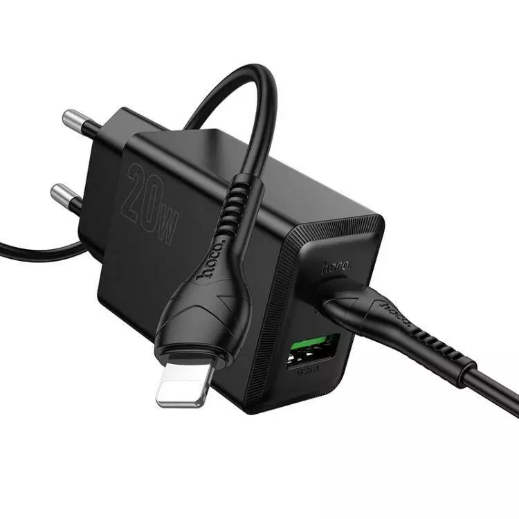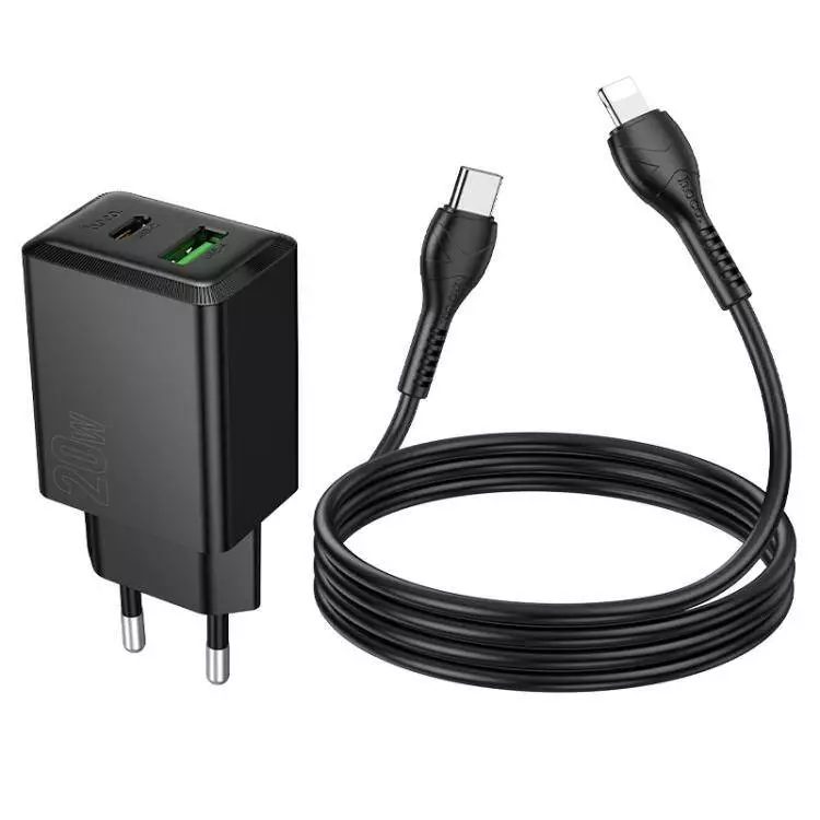 Набір СЗУ HOCO N69 + Type-C/Lighting кабель, 1xUSB+1xUSB-C, PD20W+QC3.0, кабель 1м, Black, Box