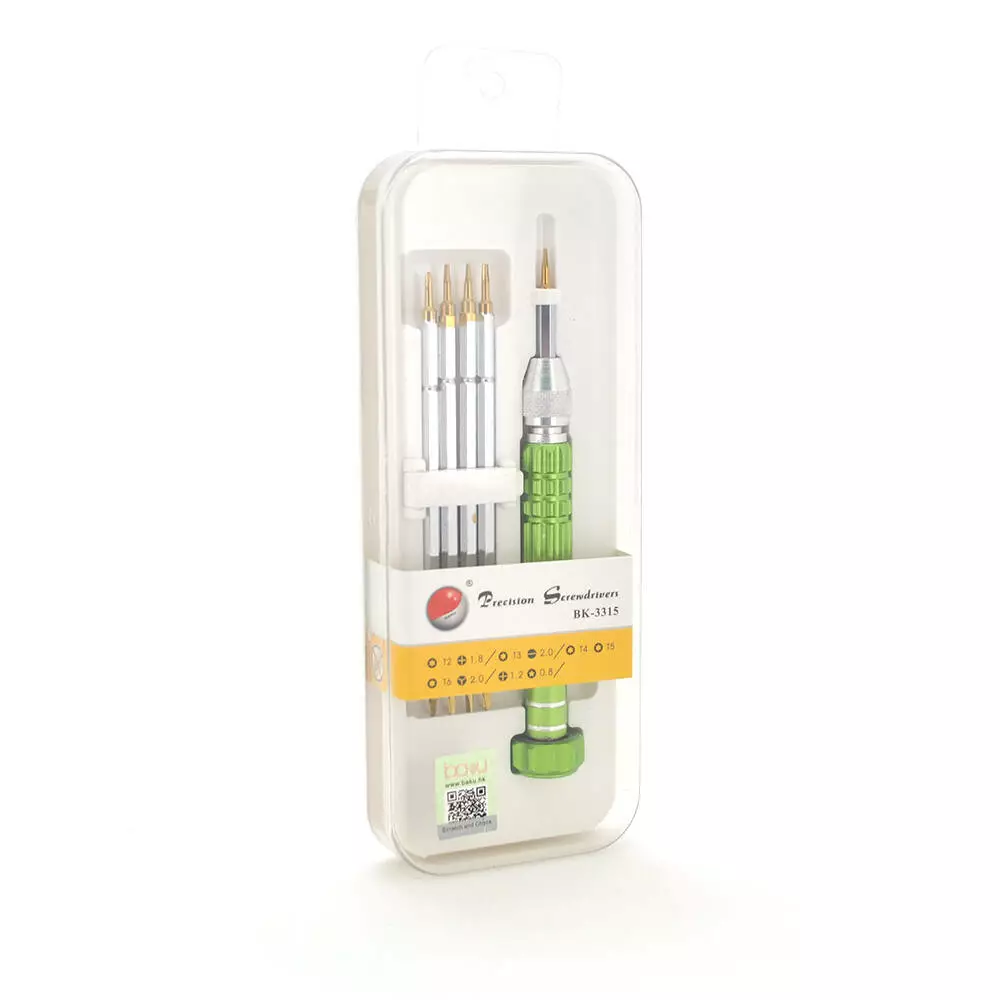 Набір викруток BAKKU BK-3315 (ручка + torx T2, torx T3, orx T4, torx T5, orx T6, хрест +1.2 мм, хрест +1.8 мм, Y-тип Y2.0 мм, п'ятипроменева зірочка 0.8), Box