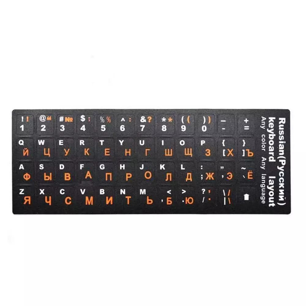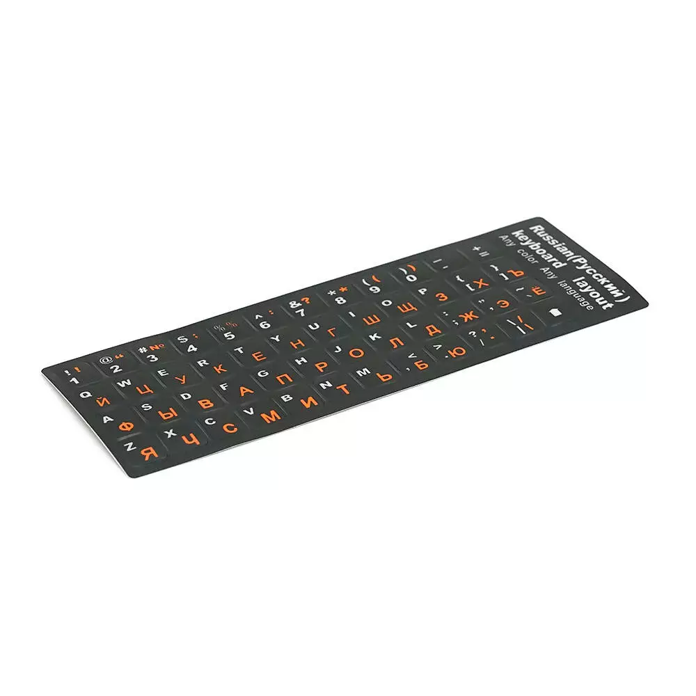 Наклейки на клавіатуру чорні з білими Англ. буквами і помаранчевими Рус.літерамиі Q100