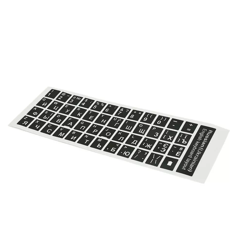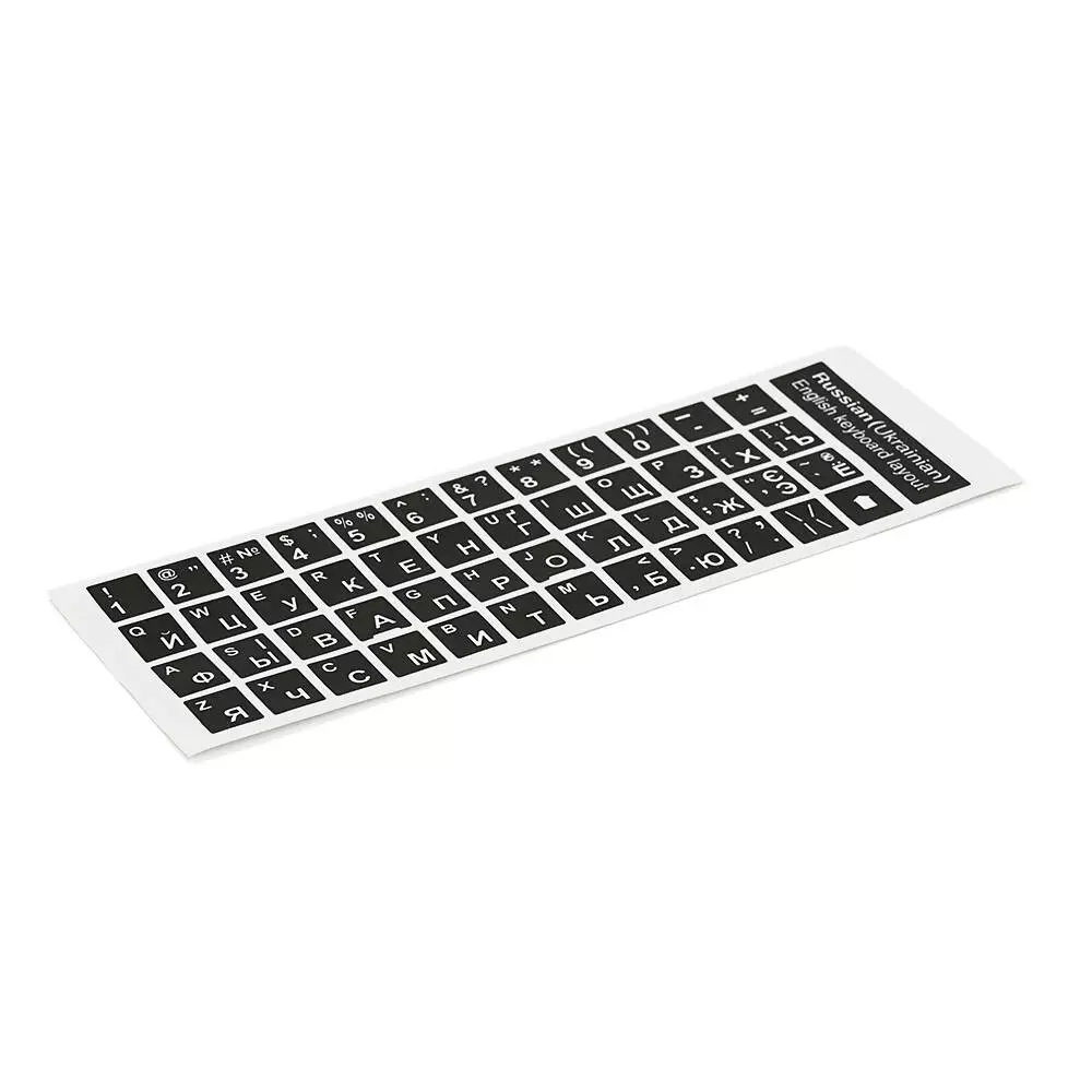 Опис: Наклейки на клавіатуру чорні з білими Англ., Укр та Рус.