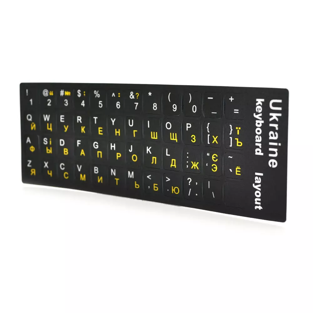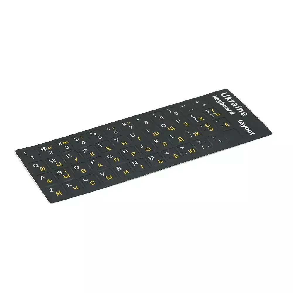 Опис: Набір наклейок на клавіатуру чорного кольору з жовтими