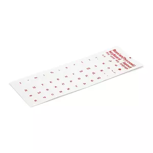 Наклейки на клавіатуру прозорі з червоними літерами Рус. Q100