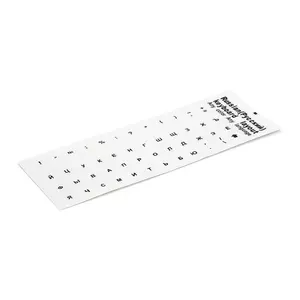 Це прозорі наклейки на клавіатуру із чорними літерами Російського алфавіту. Вони призначені для нанесення на клавіатуру, щоб робити її зручною для використання користувачами, які не володіють російською мовою.