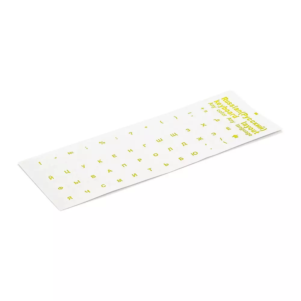 Наклейки на прозорі клавіатуру з жовтими літерами Рус. Q100
