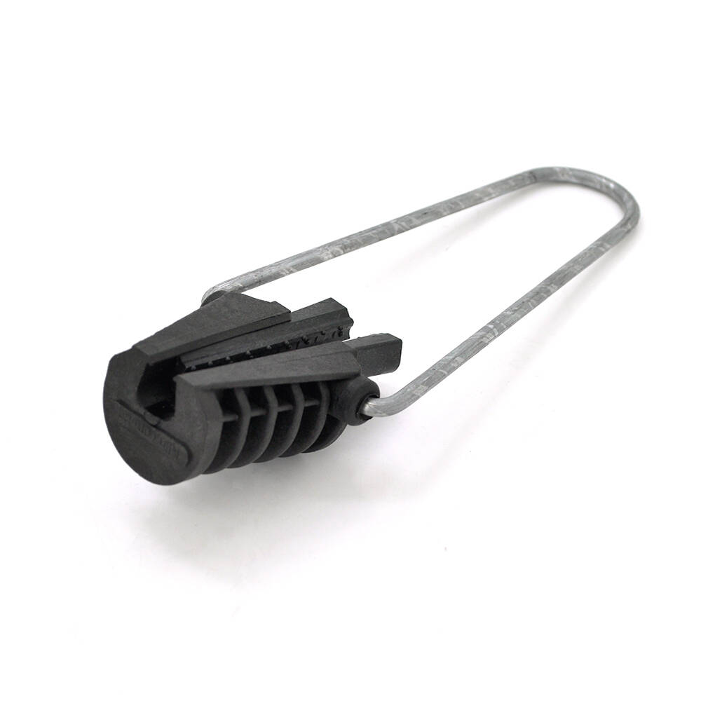 Анкерний натяжний затискач призначений для швидкого закріплення самонесучих ADSS оптичних кабелів круглого перерізу до 6 мм, кабелів на сталевому дроті або тросі. Забезпечують затискання і закріплення кабелів, без необхідності оголювати або відокремлювати трос, що несе. Конструктивно простий затиск для побудови повітряних ліній зв'язку по стовпах освітлення з максимальним прольотом 70 м. Кріпиться за петлю до траверсів Т401, КТ-251, гаків, кронштейнів. Петля виготовлена із високоякісного сталевого дроту гарячого цинкування. Затискачі складається з литого склонаповненого пластикового корпусу, з високоміцного, морозостійкого пластику і полімерних клинів, що самоналаштовуються, які затискають несучий елемент без пошкодження ізоляції. Чи не вимагають інструменту для монтажу.