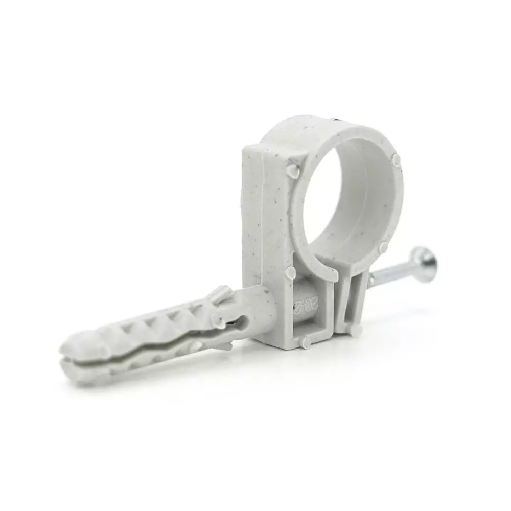 Обойма з ударним шурупом для гофри/труби білий/сірий 20-22мм (пач. 50шт. ціна за пачку)