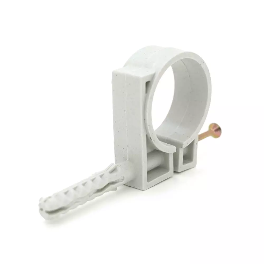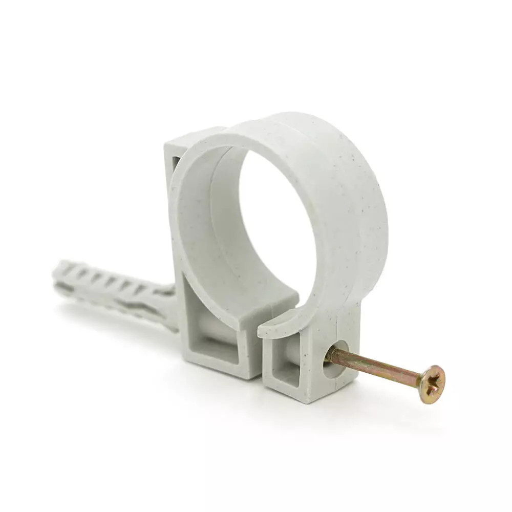 Обойма з ударним шурупом для гофри/труби білий/сірий 32-34мм (пач. 25шт. ціна за пачку)