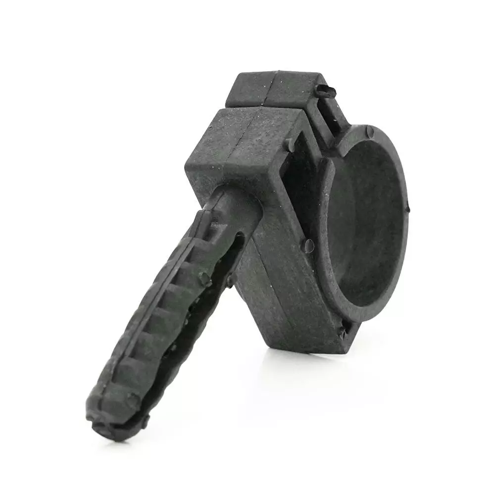 Дюбель з розпірними зубцями для надійного кріплення в будь-якому матеріалі стіни, стелі. Після розклинювання дюбеля ударним шурупом (входить до комплекту) замок-фіксатор забезпечує довге та якісне утримання труб у пластиковій обоймі. Щоб витягти виріб, необхідно викрутити шуруп та повністю демонтувати елемент. Обойма є роз'ємною.