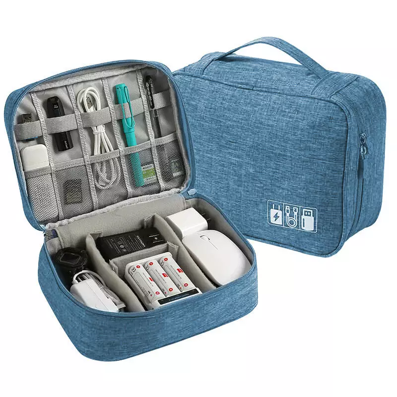 Органайзер для зарядок, проводів та кабелів, тканина оксфорд, 24х9х18см, Light blue