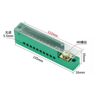 Паралельний розгалужувач-спліттер проводів FJ6/JHD-1-10, 1фаза-1вхід М8, 10 виходу (латунь) 1,5-35х1,5-16мм2, AC600V, 60А, -55°С~125°С, 120*33*55мм,GREEN