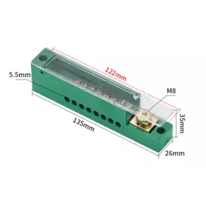 Паралельний розгалужувач-спліттер проводів FJ6/JHD-1-8, 1фаза-1вхід М8, 8виходів(латунь)1,5-35х1,5-10мм2, AC600V, 60А,-55°С~125°С,138*37*24мм,GREEN