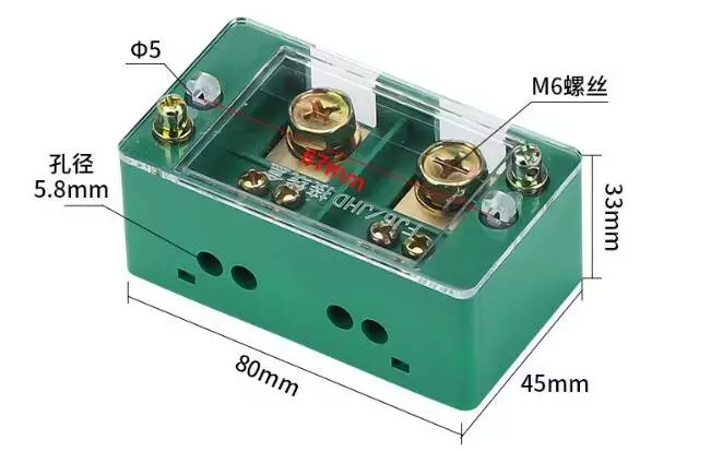 Паралельний розгалужувач-спліттер проводів FJ6/JHD-2-4, 1фаза-2вхід М8, 4 виходи(латунь)1,5-35х1,5-16мм2, AC600V,60А, -55°С~125°С, 80*33*45мм,GREEN