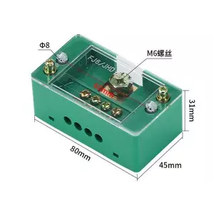 Паралельний розгалужувач-спліттер проводів JHD-1-4, 1фаза-1вхід М8, 4 виходи (латунь) 1,5-35х1,5-16мм2, AC600V, 60А, -55°С~125°С, 80*33*45мм, GREEN