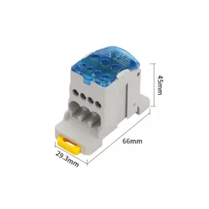 Паралельний розгалужувач-спліттер UKK80, 6 виходів (латунь) 4х6мм²+2х16мм², вхід 1х16мм², AC/DC 1000V, 80А, 75*47*29,4 мм, BLUE