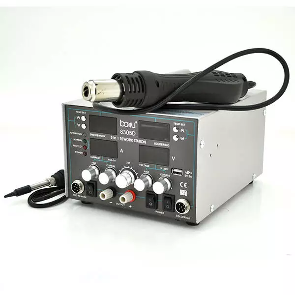 Паяльна станція BAKKU BA-8305D цифрова індикація, фен, паяльник, БЖ DC 0-30В, 5A (340*278*208) 5,1 кг