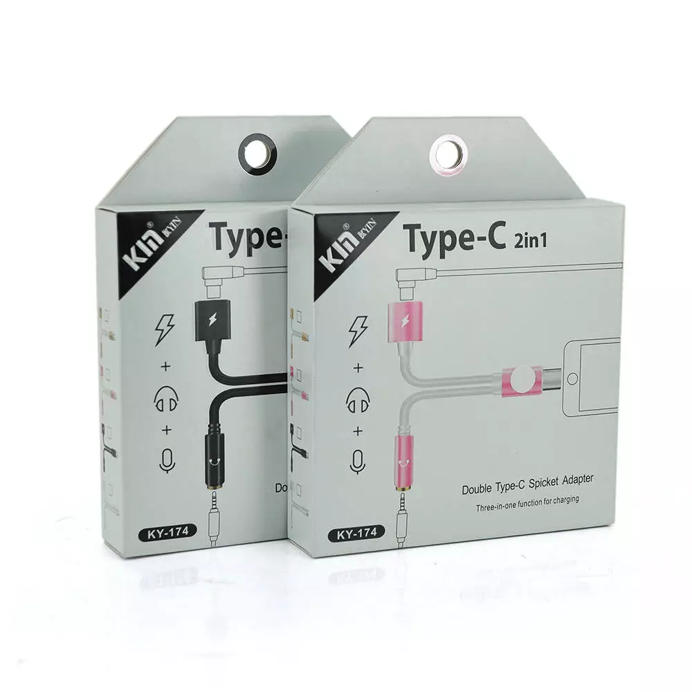 Перехідник 2 в 1 KY-174 Type-C(M) =>Type-C(F) + Jack 3.5mm(F), 5см, Black, Box