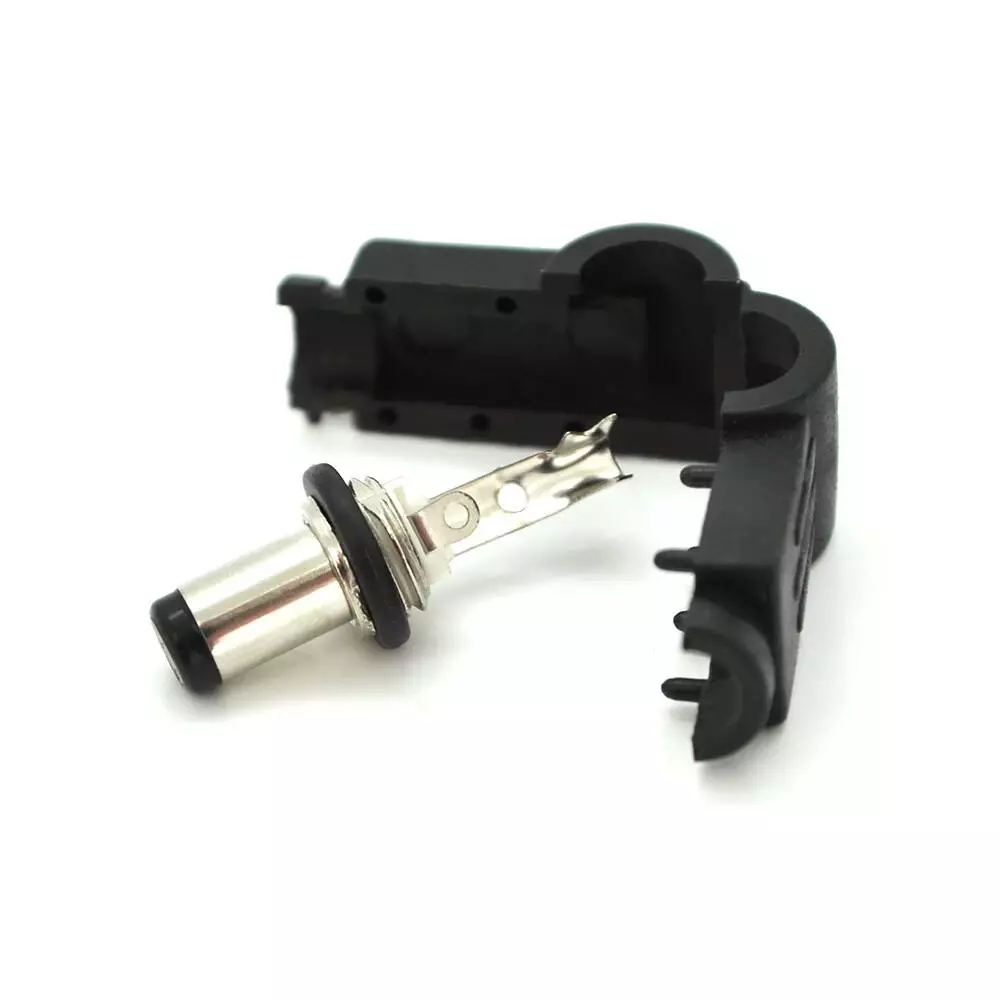 Перехідник DC 5.5x2.5mm (тато) під паяння зі штекером 90° призначений для підключення пристроїв з роз'ємом 5.5x2.5mm до джерела живлення або іншого пристрою через паяння.