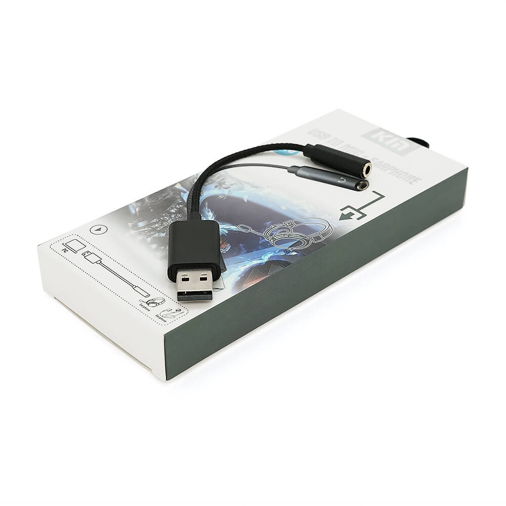 Перехідник для навушників KIN KY-210 USB2.0(M)-Jack3.5(F), Black, Box