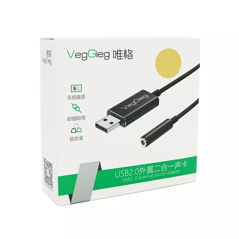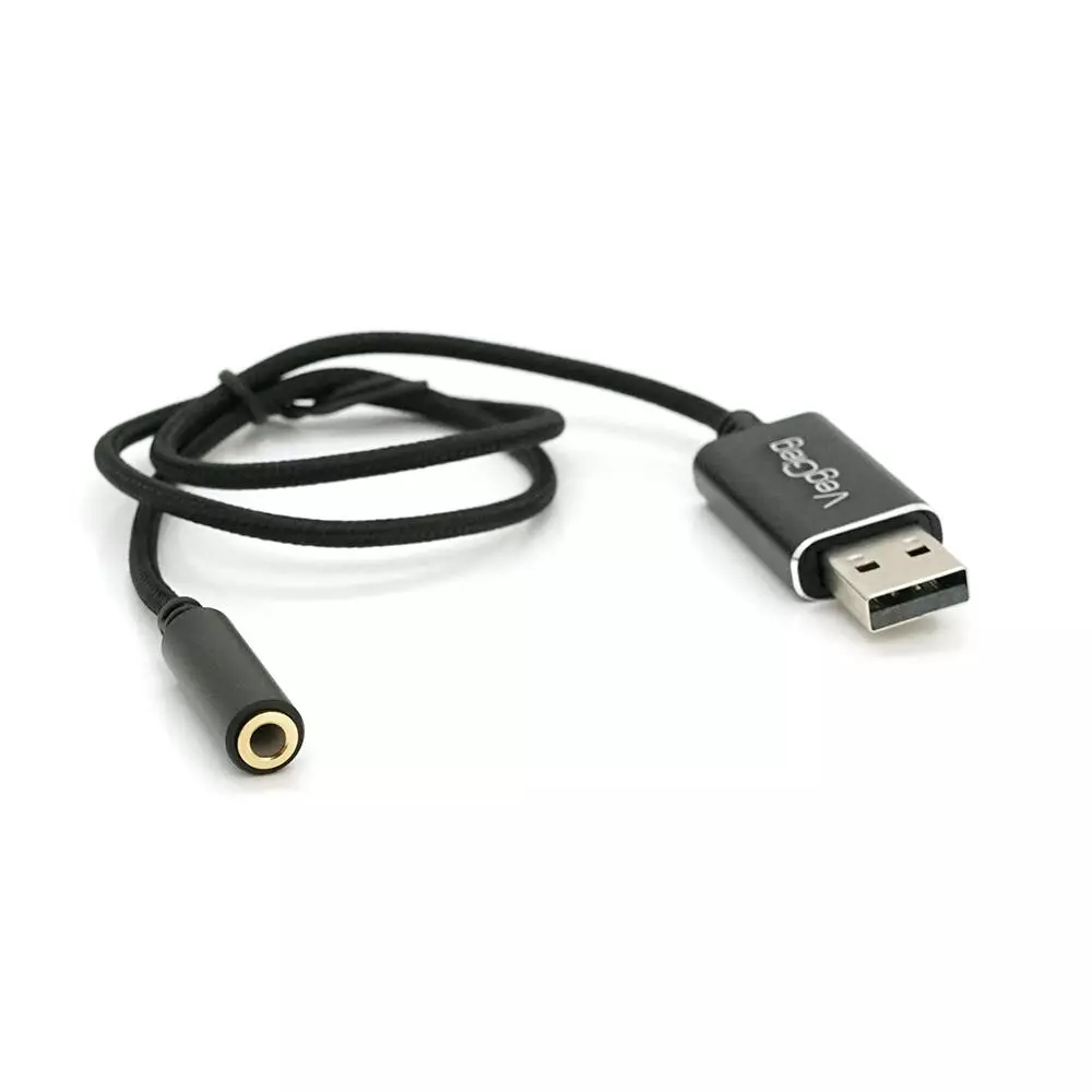 Перехідник для навушників VegGieg V-K201 USB2.0(M)-Jack3.5(F), Black, Box