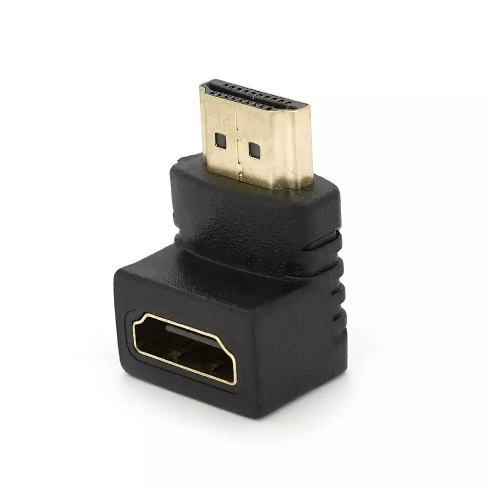 Перехідник HDMI M/F, кутовий 90грд, позолота. Для компактного підключення прямого кабелю HDMI до телевізора з роз'ємами на задній площині.