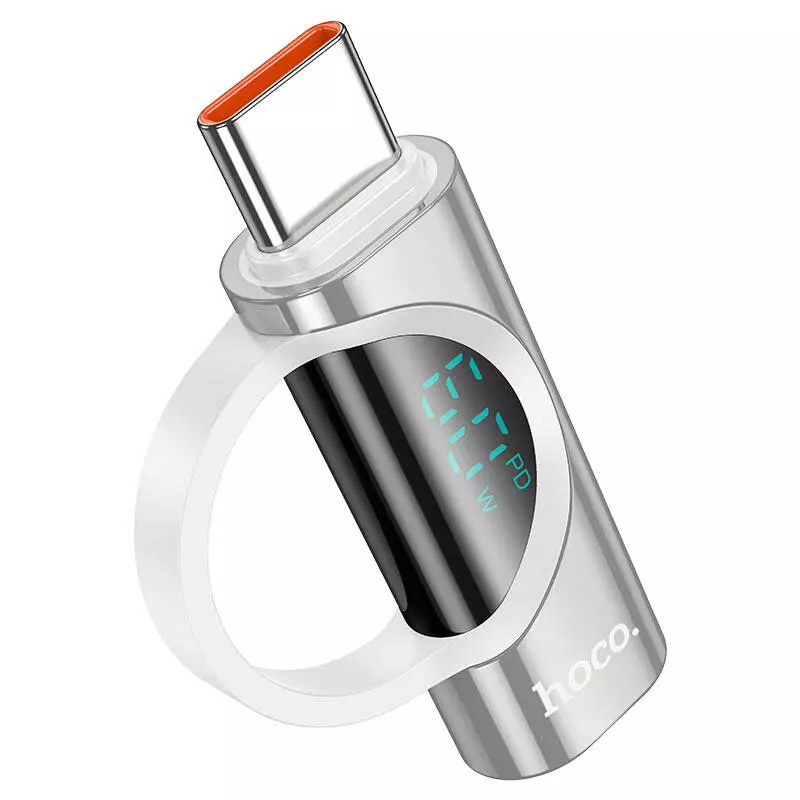 Перехідник HOCO UA32A Type-C(M) => Lighting(F), 60W, індикатор потужності заряду), Silver, Box