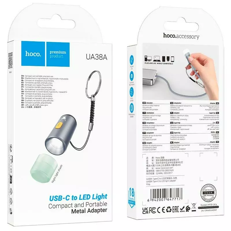 Перехідник-ліхтарик HOCO UA38 від Type-C, Gray, Box