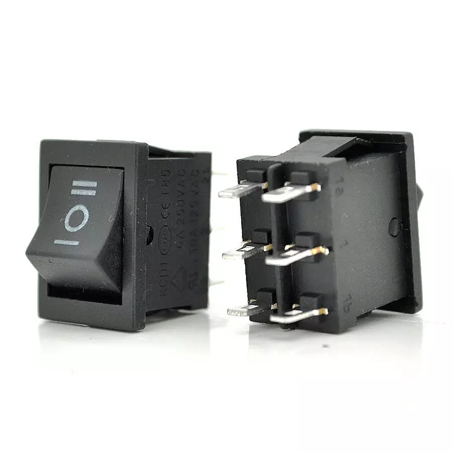 Перемикач ON-OFF KCD2-213, 250VAC / 6A, 6 контактів, Black, Q100