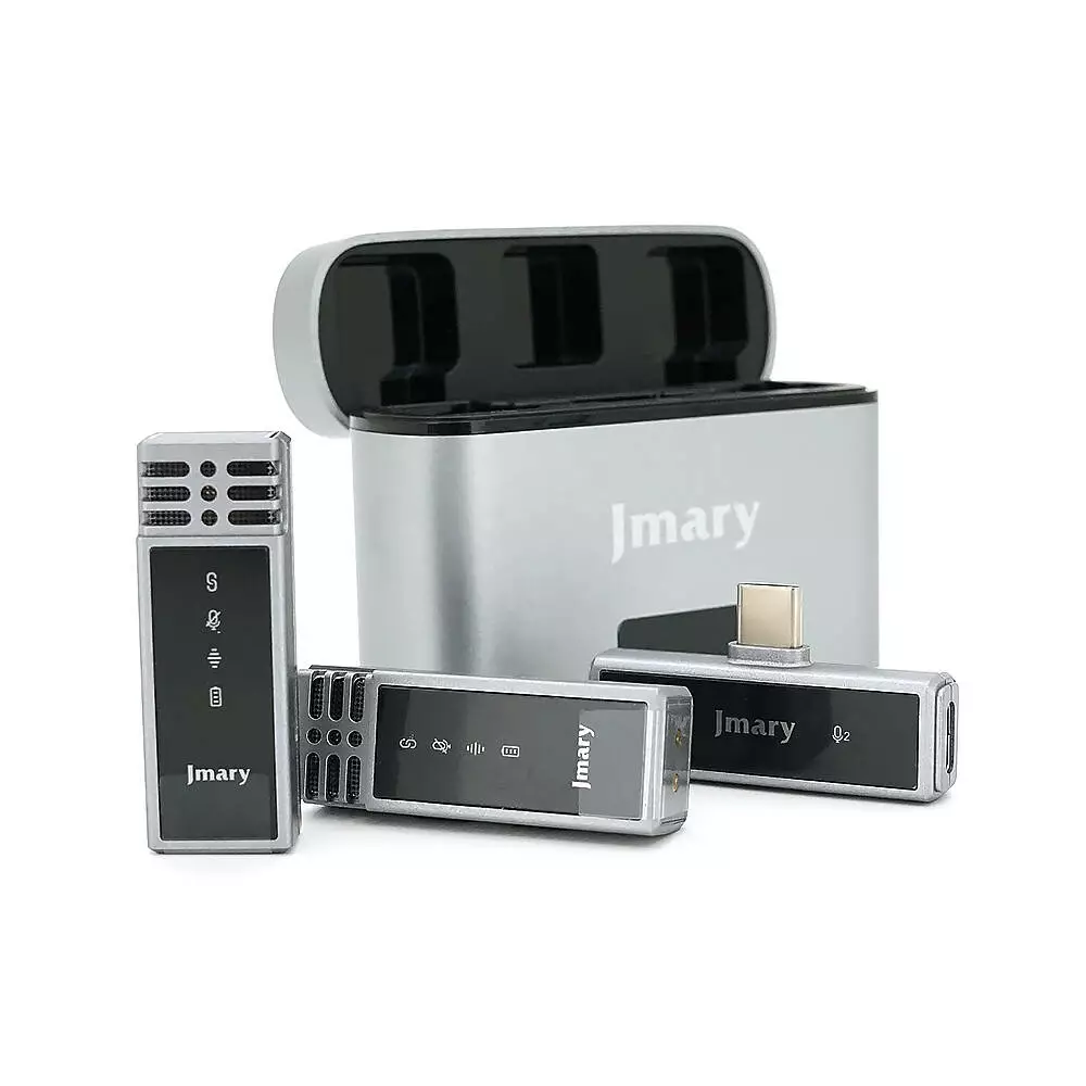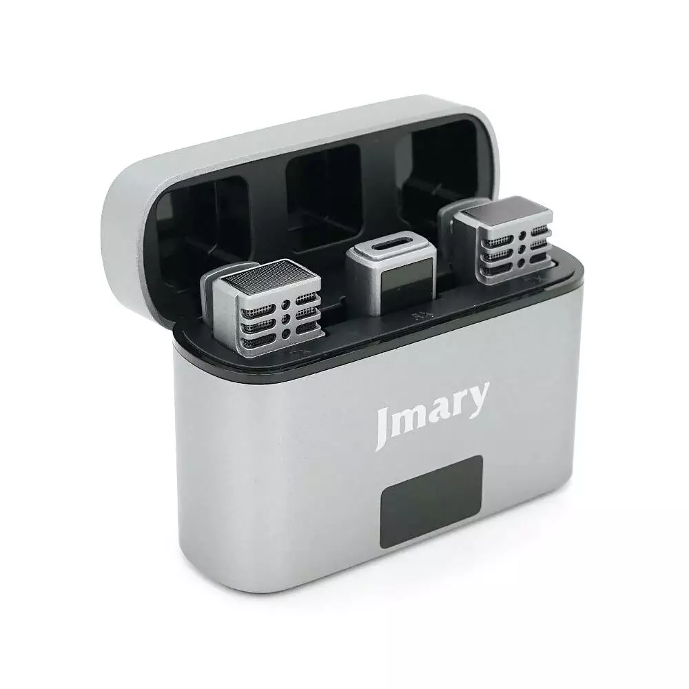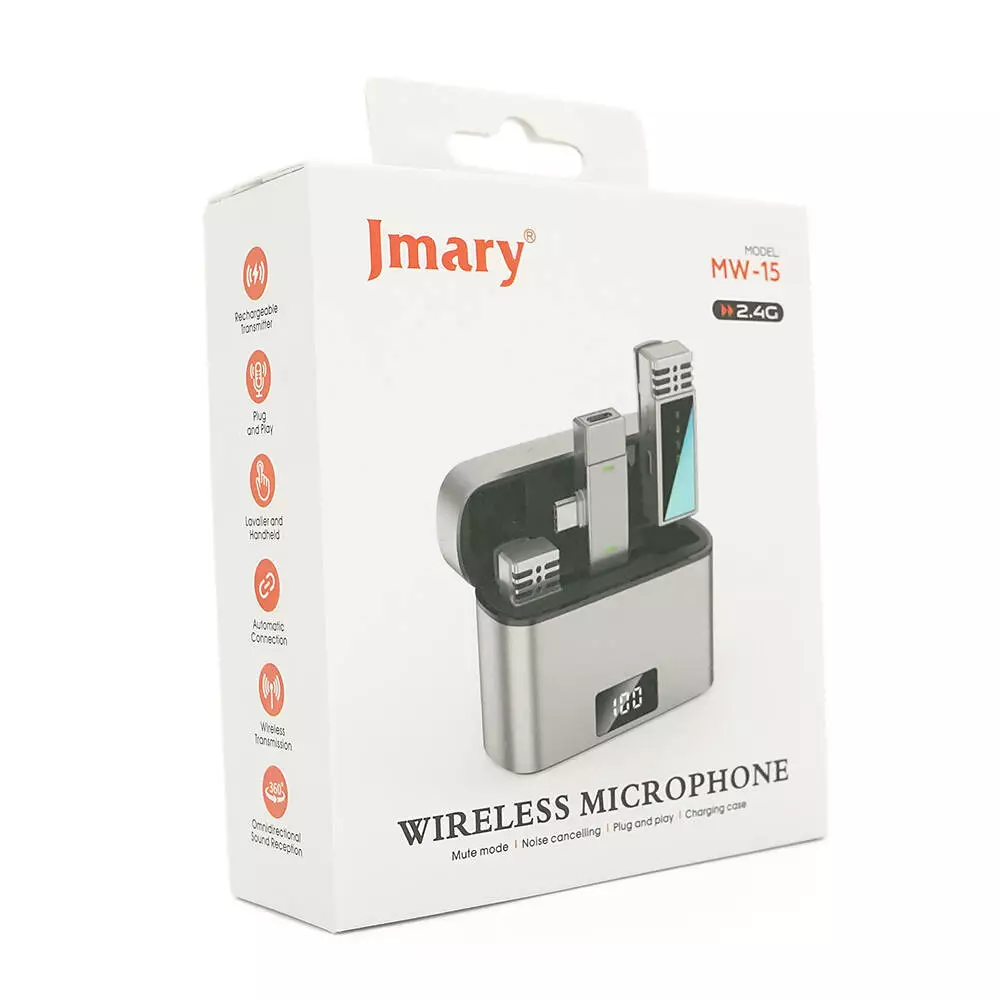 Петличний бездротовий мікрофон Jmary MW-15 (2шт)+ кейс, роз'єм Type-C, вбудований акумулятор 70 mAh, Silver, Box