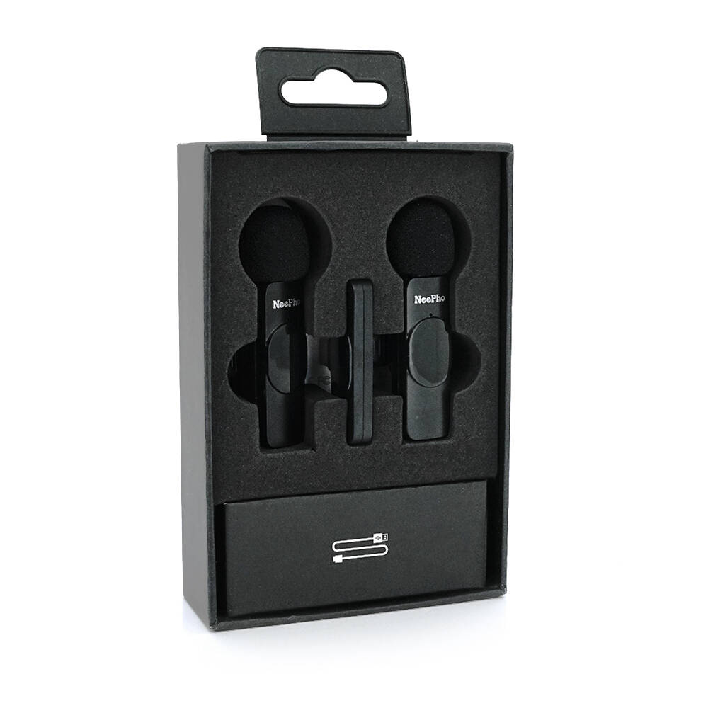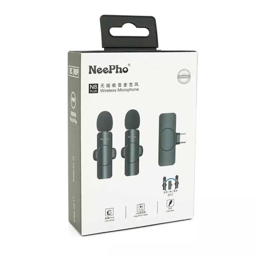 Петличний бездротовий мікрофон NeePho N8+(2шт), роз'єм Type-C, вбудований акумулятор 80 mAh, Black, Box