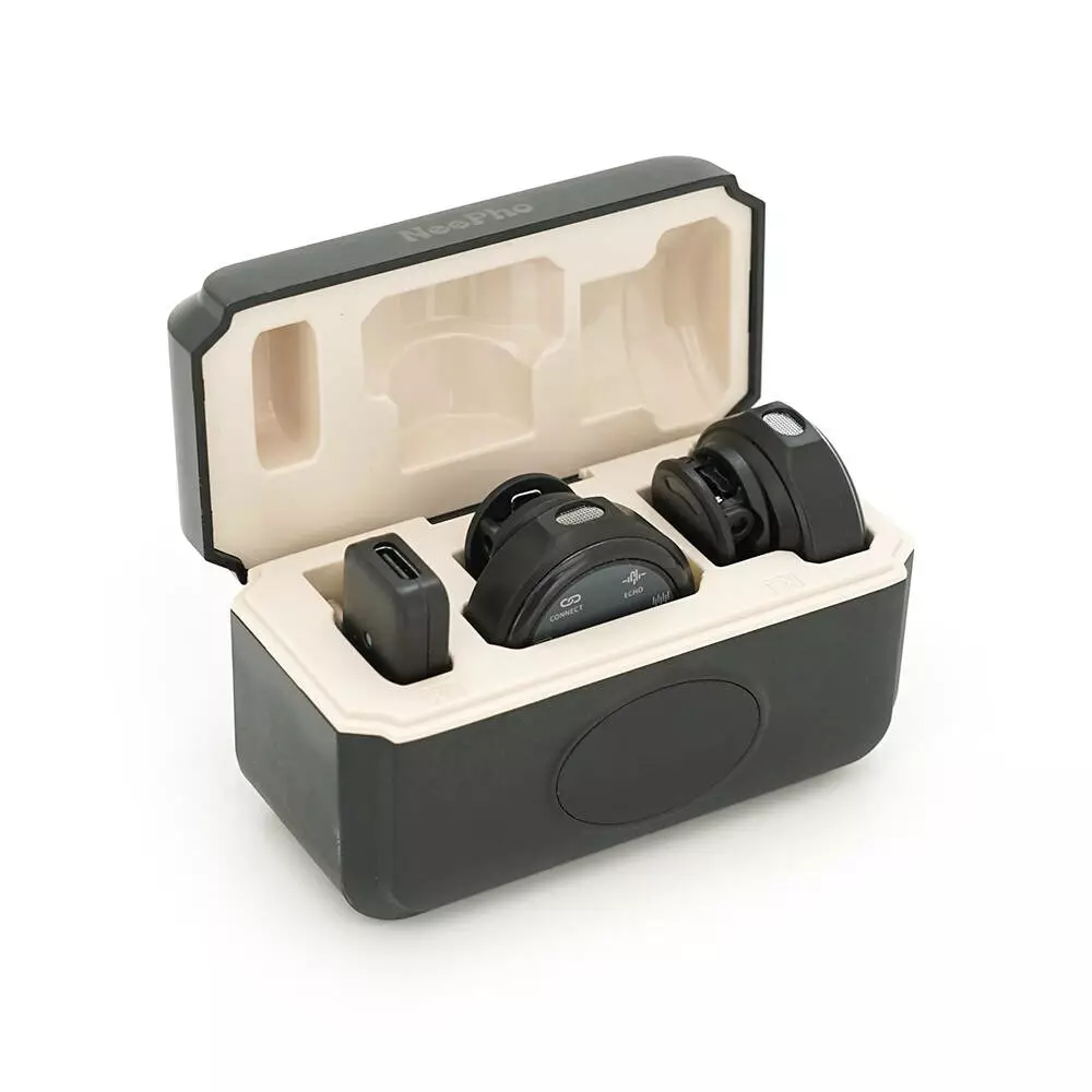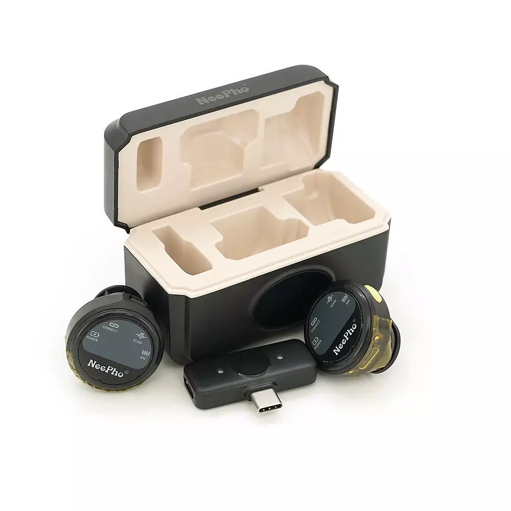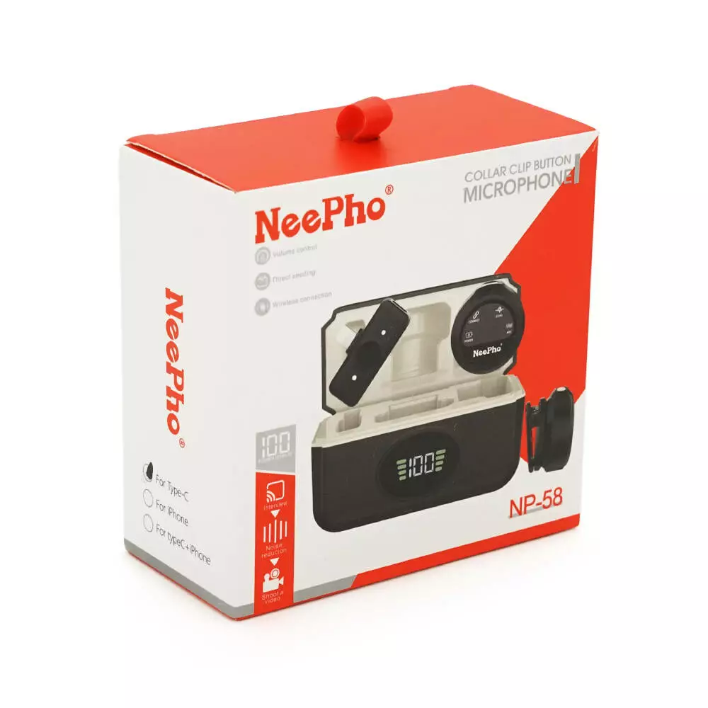 Петличний бездротовий мікрофон NeePho NP-58 (2шт) в кейсі, роз'єм TYPE-C, вбудований акумулятор 300 mAh, Black, Box