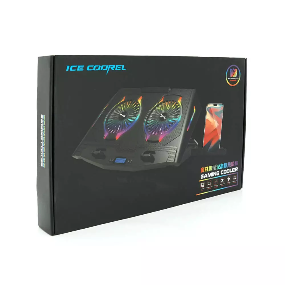 Підставка для ноутбука IceCoorel N9, 10-18", 2*125mm 1400±10% RPM, корпус пластик+алюміній, 2xUSB 2.0 + LCD display, 461x298x52mm, Silver, Box, Q8