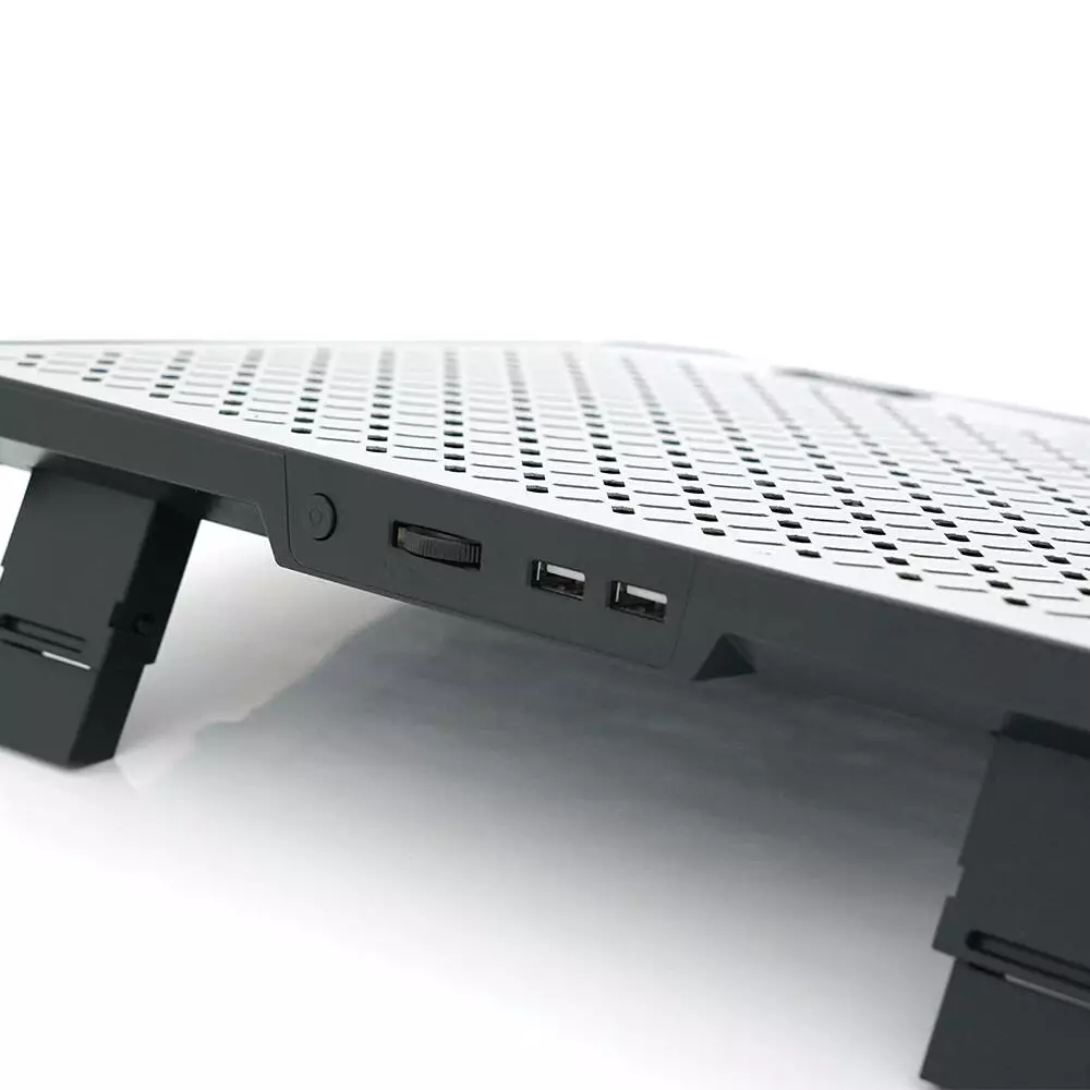 Підставка обладнана шістьма вентиляторами розміром 80*10 мм кожен, швидкість обертання яких сягає 1800 обертів на хвилину. Це забезпечує ефективне охолодження навіть за інтенсивної роботи ноутбука.