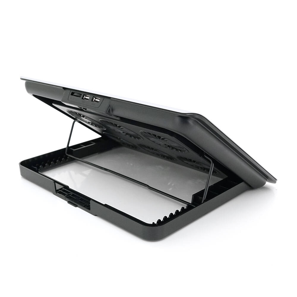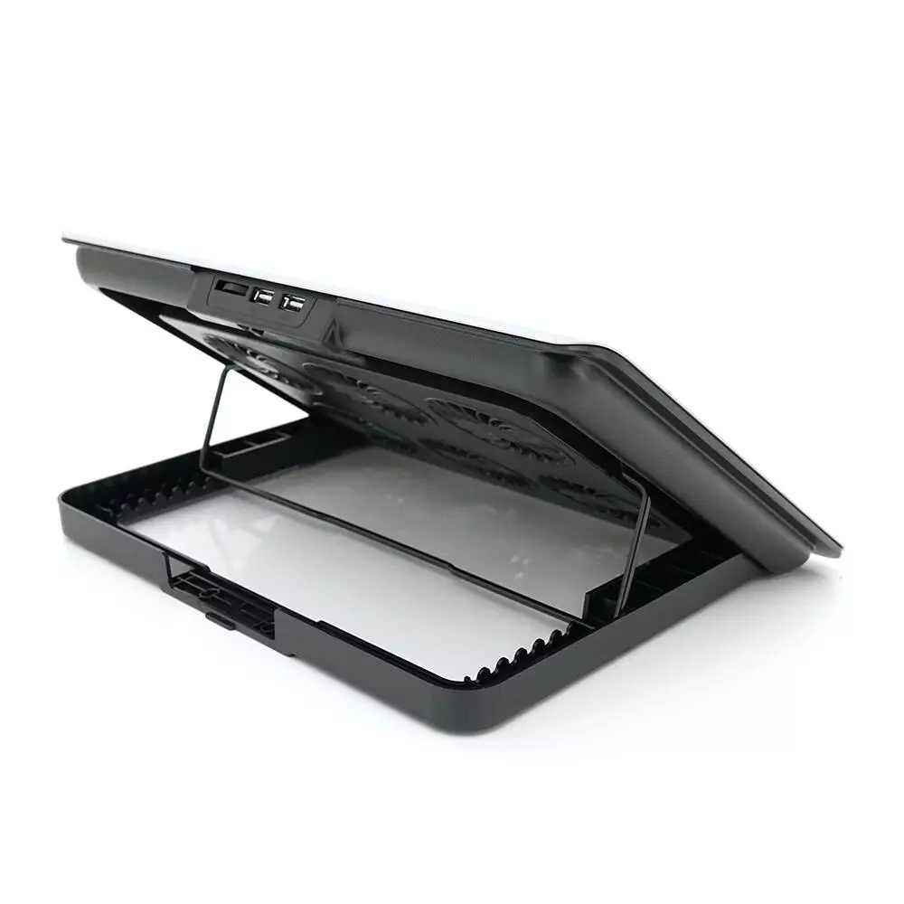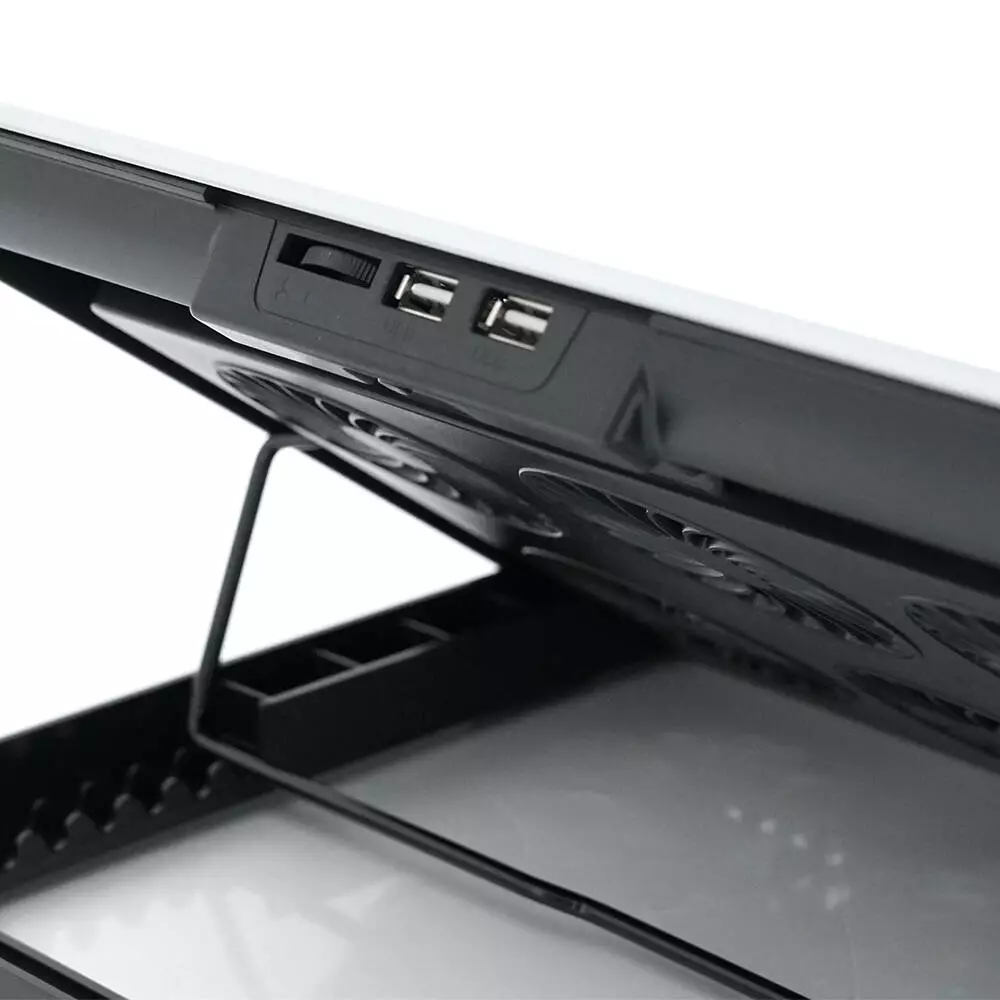 Швидкість обертання вентиляторів становить 580+/-10% RPM, що забезпечує оптимальне охолодження за мінімального рівня шуму. Підставка оснащена двома USB портами та контролерами швидкості вентиляторів для максимальної зручності використання.