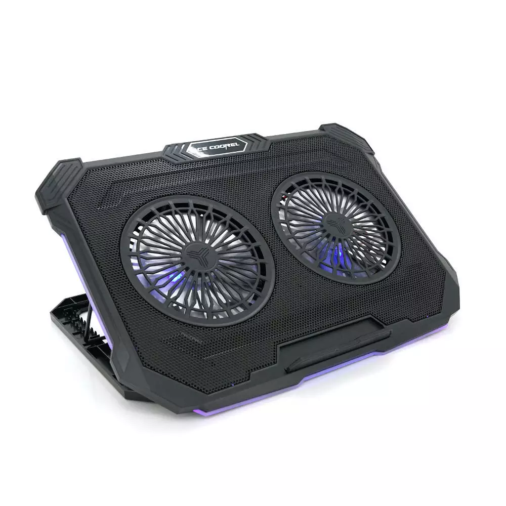 Підставка під ноутбук IceCoorel F8, 10-17", 2*125mm 1200±10% RPM, корпус пластик+алюміній, 2xUSB 2.0, 415x293x26.5mm, RGB, Box Q10