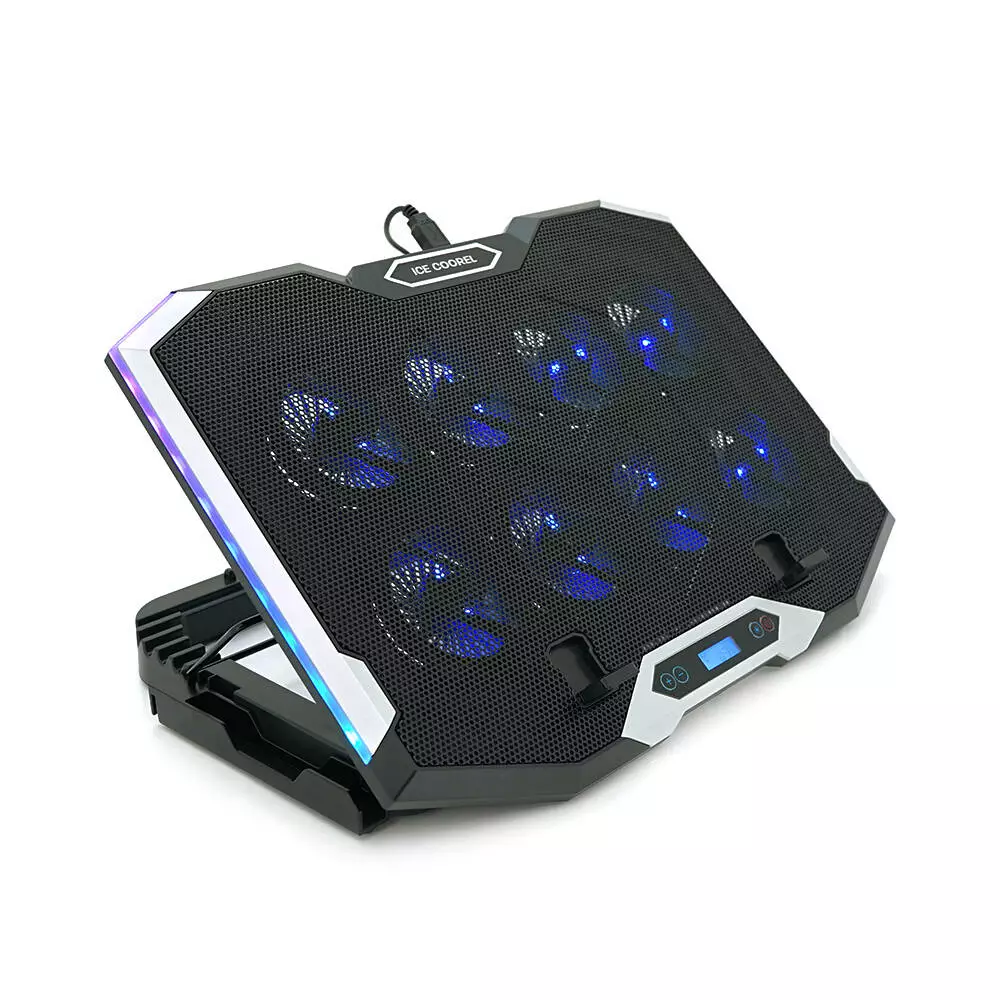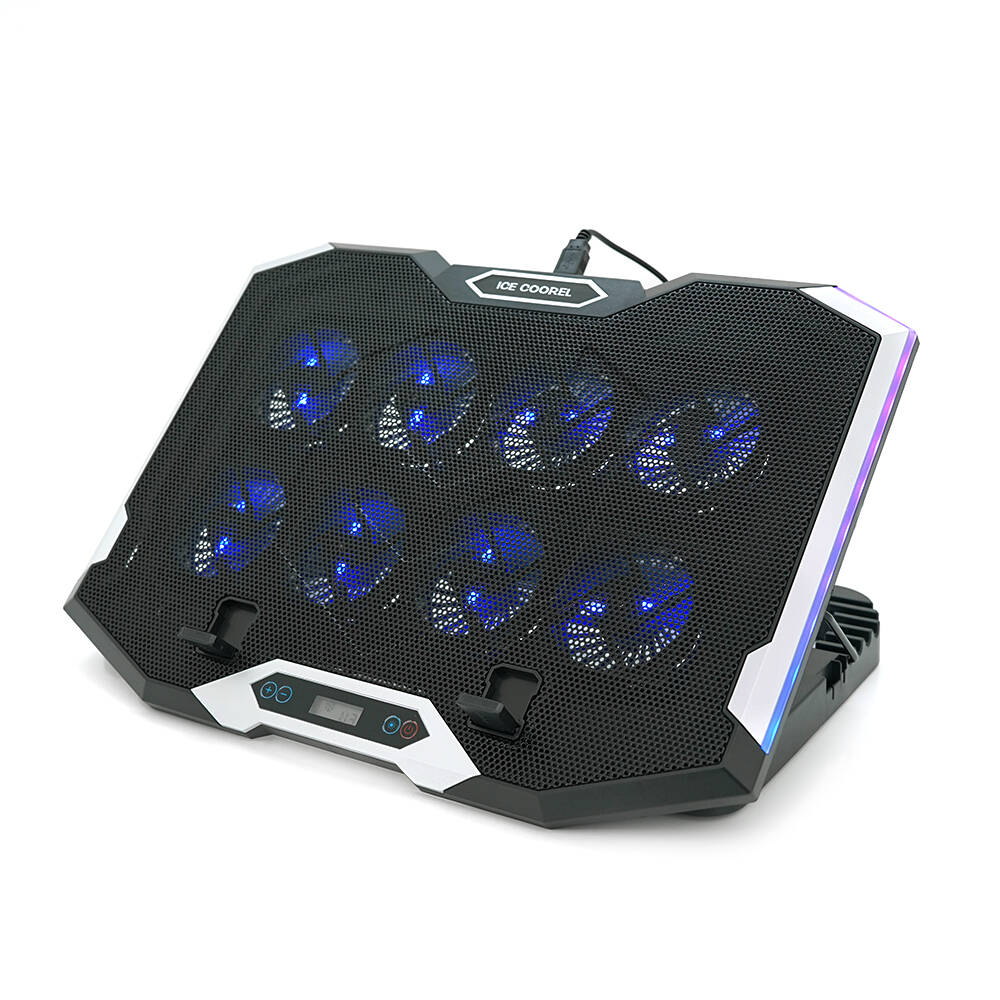 Підставка під ноутбук IceCoorel K10, 10-17", 8 * 70mm, корпус пластик + алюміній, 2xUSB2.0 + LCD, 410x297x40mm, RGB, Box, Q10
