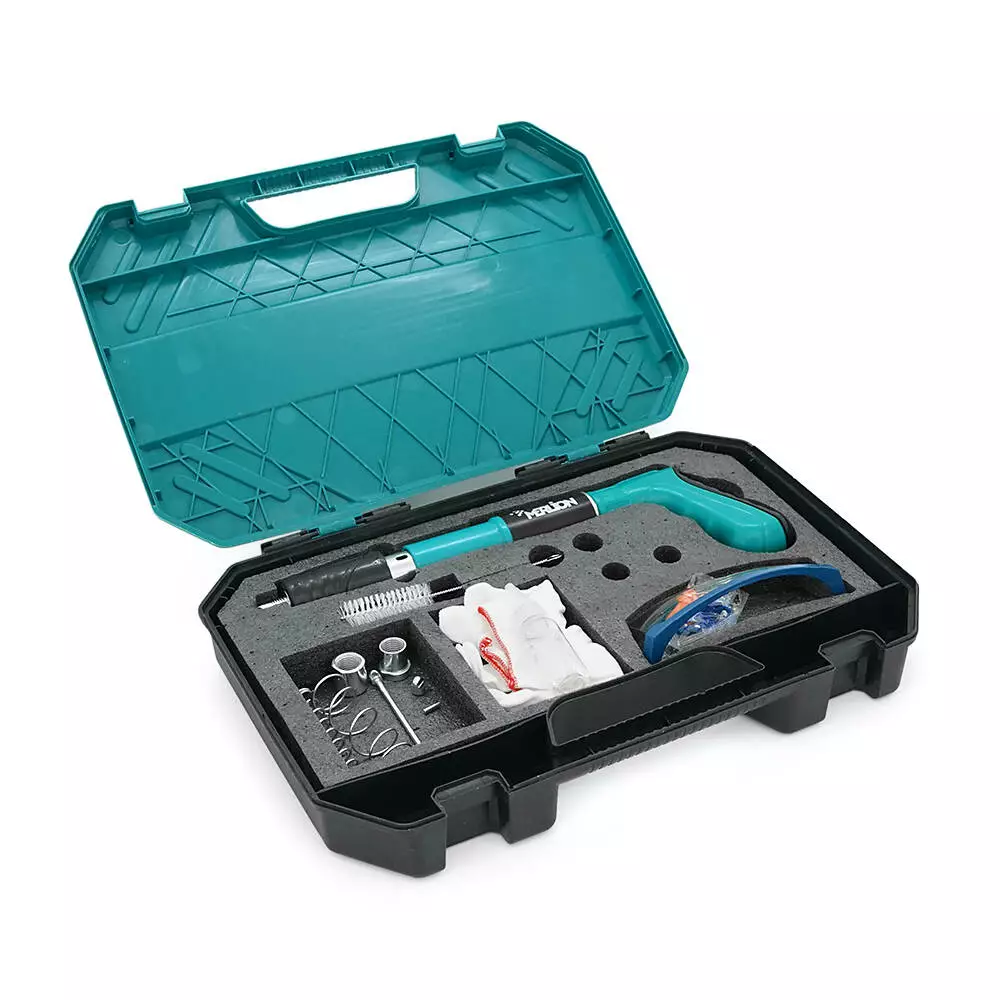 Пістолет будівельно-монтажний Yike-mini для цвяхів діаметром 7,3мм(піроксилінових), три насадки, захисні окуляри, рукавички, валіза, Green