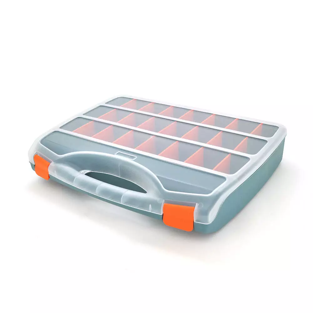 Пластиковий переносний ящик для інструментів, оснащений 24 відділеннями, ідеально підходить для зберігання та зручного транспортування інструментів та приладдя.