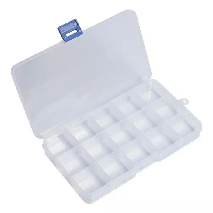 Пластиковий ящик для радіодеталей, 175 х 25 х 100 мм, 15 відділень