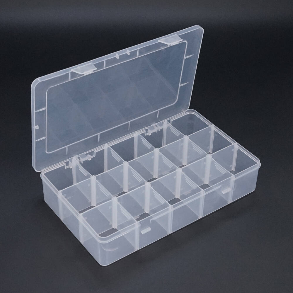 Пластиковий ящик для радіодеталей, 275 х 55 х 165 мм, 15 великих відділень