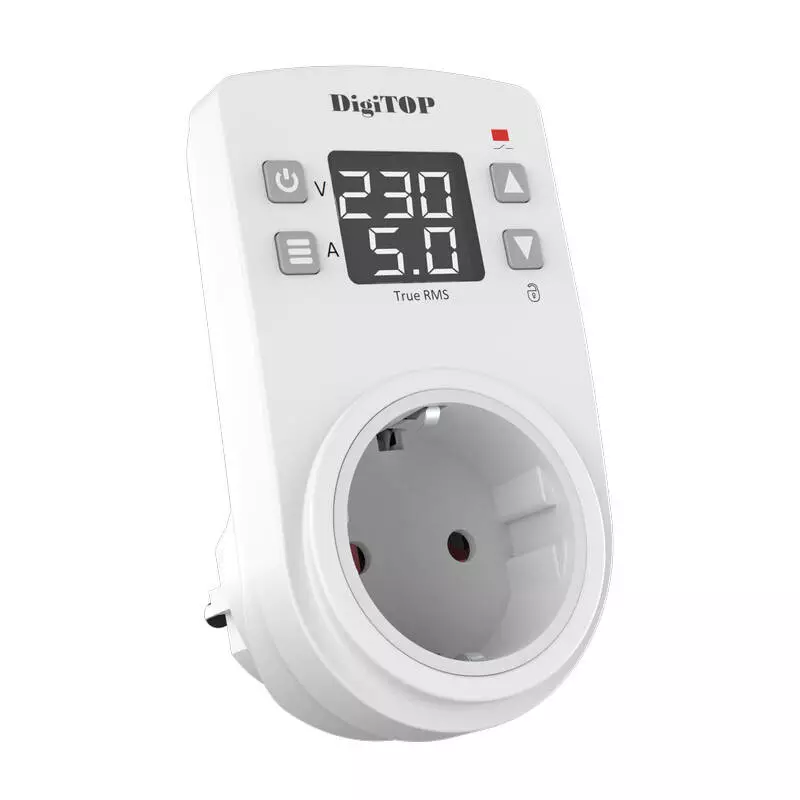 Пристрій постійно аналізує напругу в мережі та у разі виходу напруги за встановлені межі відбувається відключення підключених приладів.